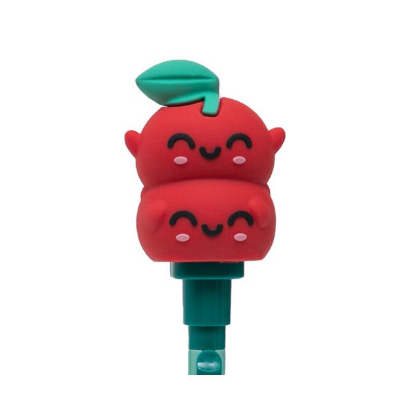 - Bolígrafo realizado en plástico, con nuestras cerezas Mr. Wonderful en su extremo, que suben y baja al abrir y cerrar el boli.