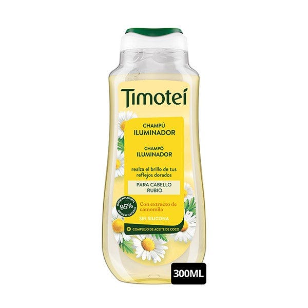 Realza los reflejos y el brillo del cabello rubio natural o con mechas con el champú Iluminador para Cabellos Rubios de Timotei.