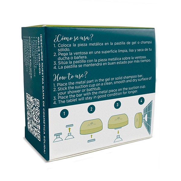 Nuestra jabonera para champú sólido está diseñada para ser usada de manera simple y sencilla, esto significa que puedes instalarla y empezar a usar en cuestión de segundos. Con tan solo usos pasos tu jabonera con ventosa quedara suspendida y lista en cualquier superficie de tu baño.
