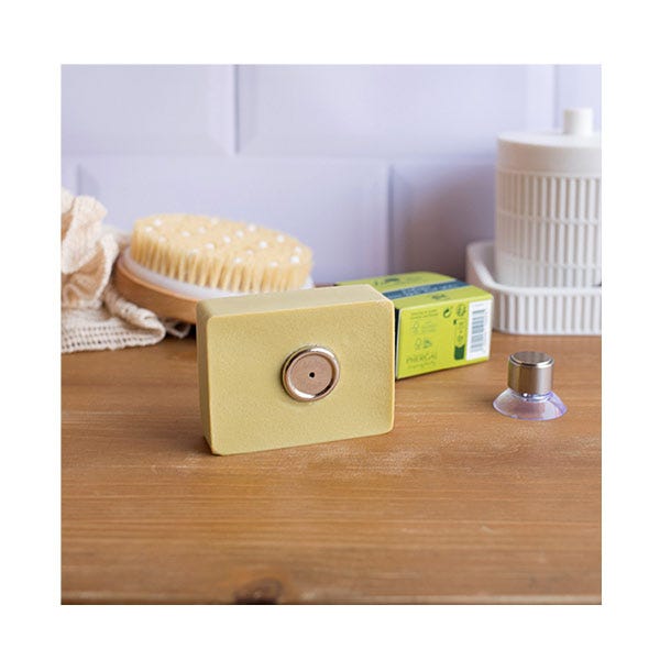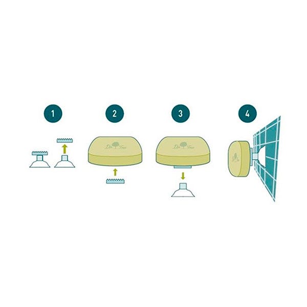 Imán portasólidos de Dr. Tree, con el que podrás tener tus champús y géles sólidos a salvo y en bues estado por más tiempo en la ducha, sin preocuparte de la incomodidad de que se escurran las pastillas al estar mojadas. Sólo tienes que apretar la pieza metálica sobre la pastilla para que se quede dentro de este, y fijar la ventosa a la pared de la ducha. Sigue los siguientes pasos: