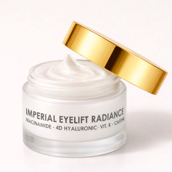 Su fórmula combina niacinamida, que ayuda a mejorar la uniformidad del tono y la luminosidad, vitamina K1, reconocida por su acción sobre la apariencia de ojeras, y cafeína, que contribuye a descongestionar y revitalizar el contorno de los ojos.