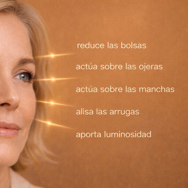 Ayuda a reducir la apariencia de bolsas y ojeras, aporta luminosidad y contribuye a un tono más uniforme, dejando la mirada más descansada, fresca y revitalizada. El contorno se percibe más confortable y visiblemente iluminado.