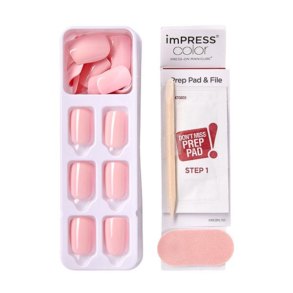 El kit contiene 30 uñas, almohadilla de preparación, mini lima y palito de cutículas.