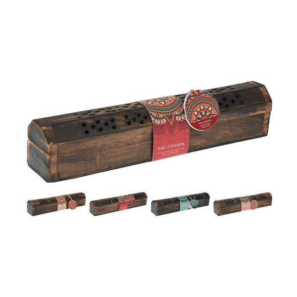 Set de incienso en caja de madera, de 305x60x65mm, con 20 varillas de incienso y 20 conos de incienso.