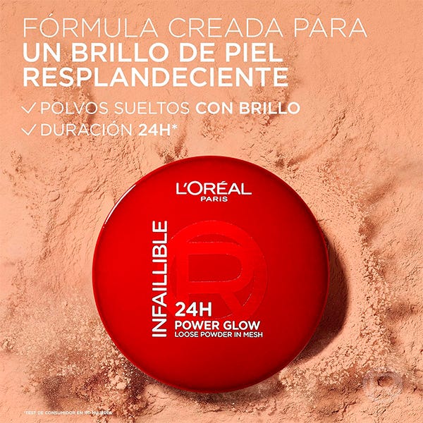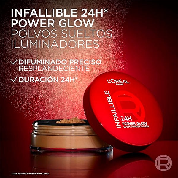 L'Oréal Paris Infallible 24H Power Glow Loose Powder. Fórmula hidratante y respetuosa con la piel con perlas planas. Para un brillo difuminado en la piel y un acabado radiante que dura hasta 24H. La fórmula respetuosa con la piel, con perlas planas, proporciona un brillo impecable que difumina la piel y da un acabado refinado y radiante que dura 24H