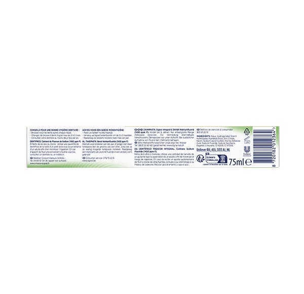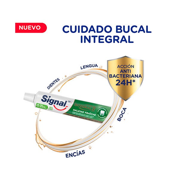 Clínicamente probada, la pasta de dientes Signal combina 8 acciones: protección contra la caries, fortalecimiento de las encías y del esmalte, aliento fresco, acción blanqueadora reforzada, protección contra la sensibilidad dental, anti placa bacteriana, antisarro y antibacterial.