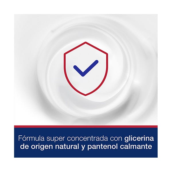 Su fórmula concentrada nutre intensamente la piel, gracias a la Glicerina de origen vegetal y al Pantenol, ingrediente conocido por sus propiedades calmantes.