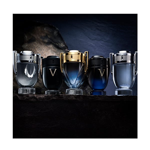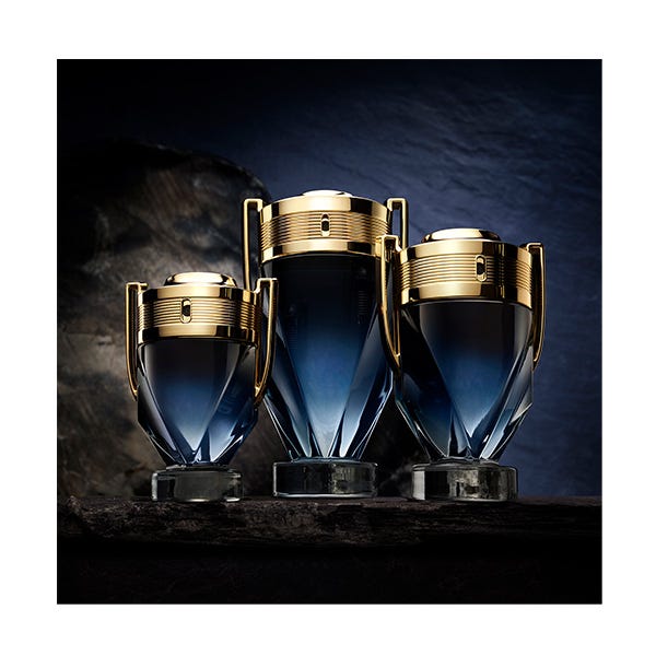 Este perfume amaderado, acuoso y aromático para hombre se presenta en el icónico frasco INVICTUS con forma de trofeo, una silueta en V más marcada y un tapón dorado más poderoso que nunca.