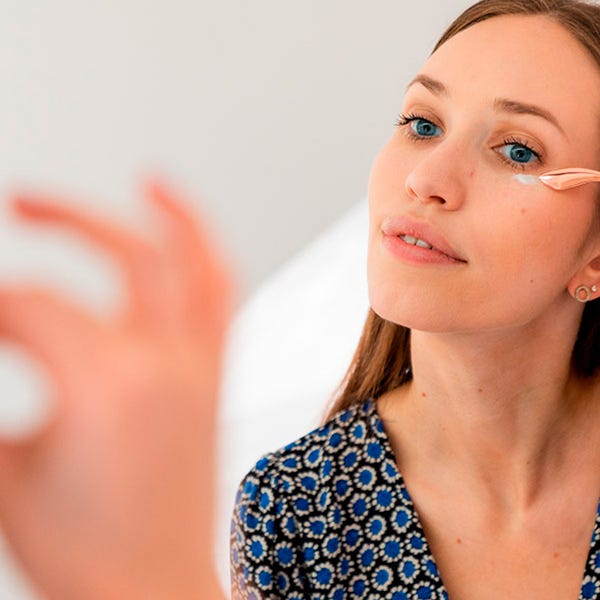 • Alternativamente, puedes usar la punta de los dedos y aplicar suavemente la crema en el contorno de los ojos.
