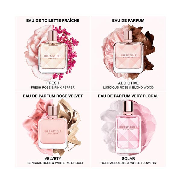 Revela tu lado más atrevido con Irresistible Very Floral, el nuevo Eau de Parfum solar de Givenchy para mujer. La cautivadora mezcla de Rosa Absoluta y delicadas Flores Blancas desata una audaz adicción floral. Para una sofisticación magnificada y una feminidad empoderada a la que es imposible resistirse.