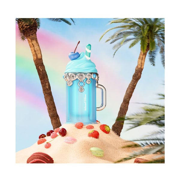 Este perfume propone una escapada a una isla paradisiaca, esta deliciosa y lujosa fragancia combina la frescura de las flores, haciéndola casi acuática y verde en su salida, y luego tiene un desarrollo dulce y avainillado, envolviéndote en un aroma duradero que evoca días soleados y relajación absoluta.