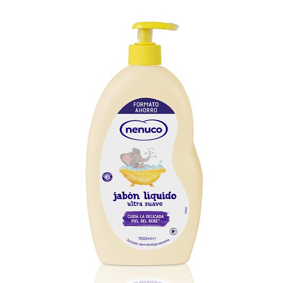 El jabón líquido ultra suave Nenuco cuida de tu bebé, limpiando y aportando suavidad a su delicada piel gracias al extracto de Aloe y la Vitamina E.