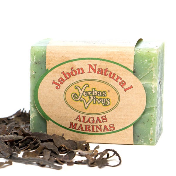 Jabón natural y artesano de algas marinas Yerbas Vivas. Elaborado con aceites y extractos vegetales. Sin grasas animales. Producido con el antiguo método “en frío” que mantiene intacta la naturaleza de los elementos utilizados. Ideal para el tratamiento de la celulitis y como exfoliante, para eliminar las células muertas y hacer que la piel sea más pura.