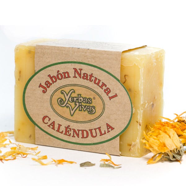 El jabón natural pastilla baba de caracol de Yervas Vivas está elaborado exclusivamente con aceites vegetales naturales y extractos de plantas aromáticas. En este caso la caléndula calma la piel con excemas y psoriasis evitando el picor y disminuyendo las rojeces.