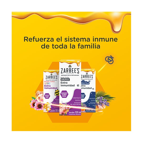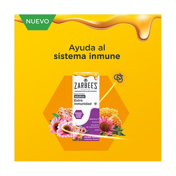 Nuestro jarabe Zarbee’s Adultos Extra Inmunidad está hecho con miel pura rica en nutrientes, extracto de equinácea de origen natural y vitaminas esenciales para apoyar al sistema inmune.