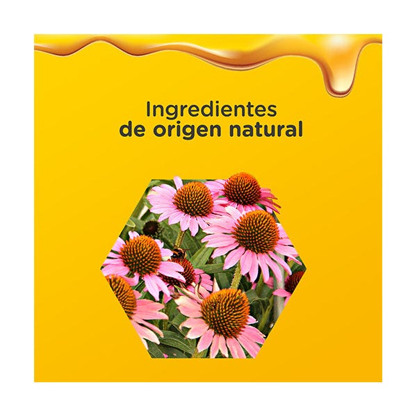 Miel (46%), sacarosa, agua, extracto de raíz de equinácea (extracto de Echinacea Purpurea) , ácido cítrico (regulador de la acidez), saborizante, sorbato de potasio (conservante), benzoato de sodio (conservante), D-biotina, vitamina D.