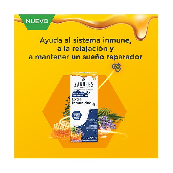 Nuestro jarabe Zarbee’s Noche Extra Inmunidad contiene todas las bondades de la miel pura y de las vitaminas que apoyan el sistema inmune.