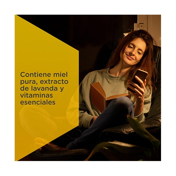 También contiene extracto de lavanda, conocida por sus propiedades calmantes, para facilitar la relajación y un sueño reparador.
