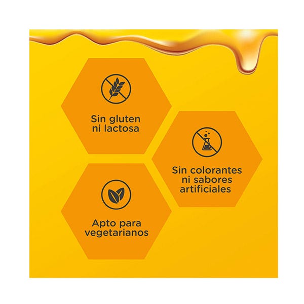 Miel de flores (17,4%), E422 glicerol (17,4%), fructosa, E464 hidroxipropilmetilcelulosa, extracto de Hedera helix L. (hoja) soportado en maltodextrina (0,26%), E415 goma xantana, E202 sorbato de potasio, sabor a albaricoque, E330 ácido cítrico, sabor a limón, agua purificada.