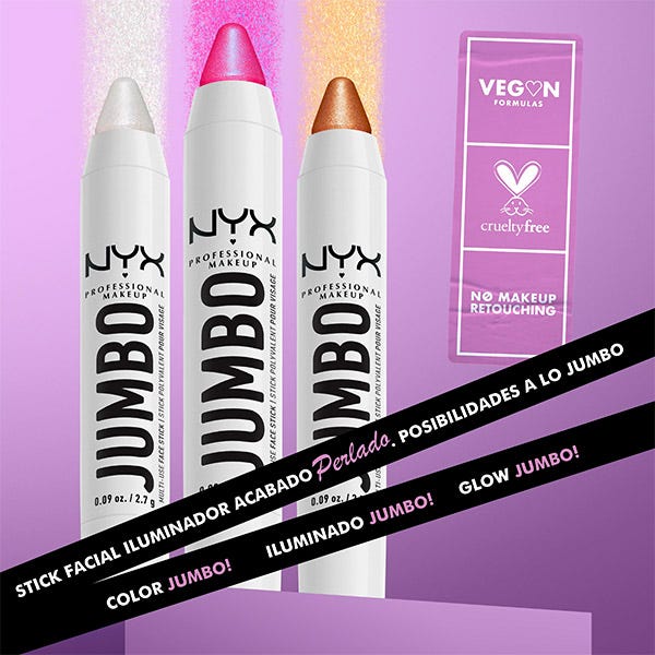 Descubre la combi completa: highlight, color y glow con los nuevos iluminadores Jumbo Stick de Nyx en tonos perlados.