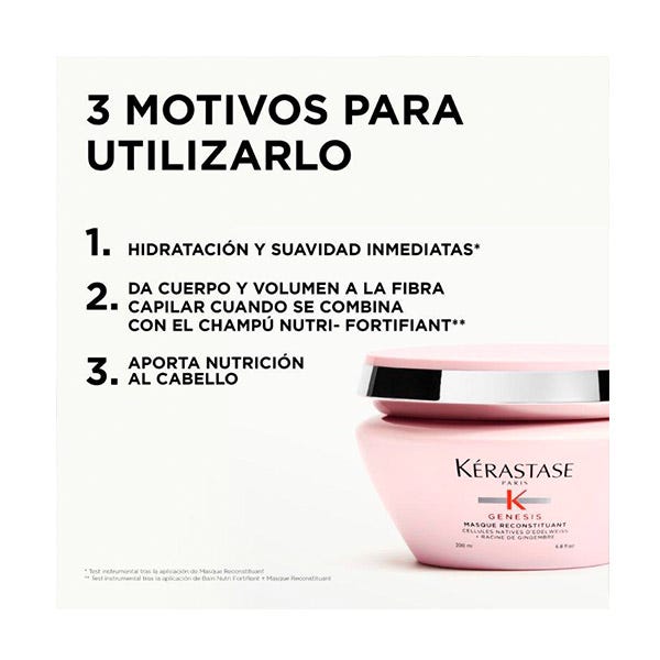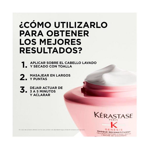 Utilice esta intensa mascarilla fortificante una vez a la semana o después de cada champú para nutrir, desenredar y reforzar el cabello, reduciendo el riesgo de caída del cabello por rotura.