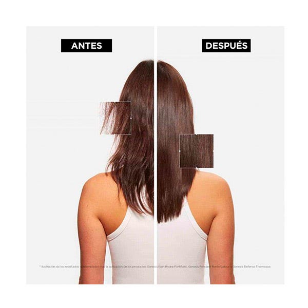 Su fórmula fortalece las zonas más debilitadas, proporcionando una textura uniforme a la fibra, que potencia la suavidad, brillo y facilidad de desenredado.