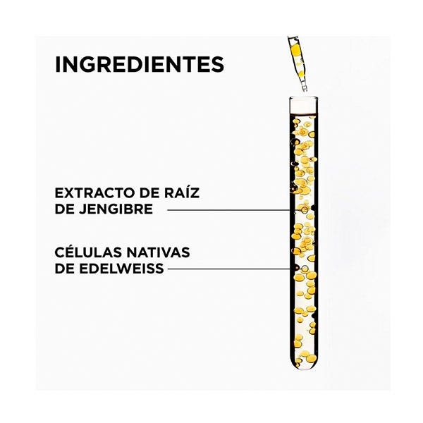 Enriquecido con Células Nativas de Edelweis, conocidas en el cuidado de la piel por su poder antioxidante y Raíz de Jengibre conocido por su efecto protector contra los agresores externos.