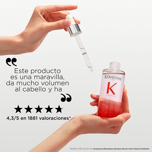 El Sérum Fortifiant Antichute Genesis de Kérastase es la solución ideal para el cabello debilitado y propenso a la rotura y caída durante el cepillado.