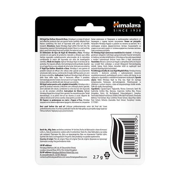 Define tus ojos, naturalmente. Enriquecido con rosa de Damasco y Triphala, el Kajal herbal del Himalaya combina ingredientes tradicionales como aceite de almendras y aceite de ricino con rosa de damasco para refrescar y nutrir los ojos.