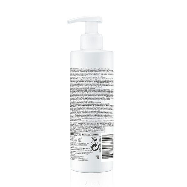 El champú reparador Kera-Solutions combina una fórmula de microrellenado con complejo Pro-Keratin para reparar el cabello después de un solo uso.