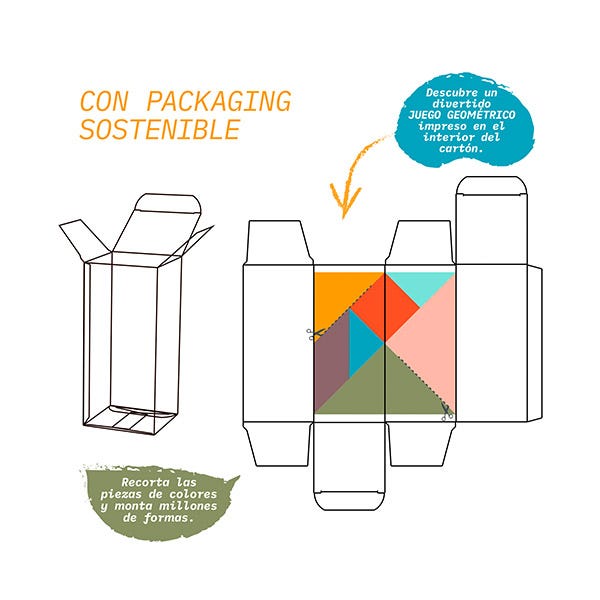 Con packaging sostenible. Incluye un juego geométrico en el interior para recortar y montar millones de formas.