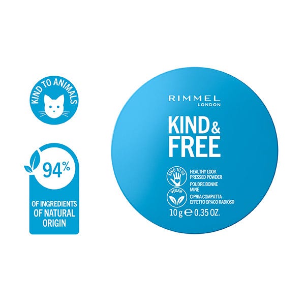 Kind & Free™ polvo compacto matificante ligero formulado con aloe vera.Es una gama de maquillaje clean elaborado con fórmulas 100% veganas, respetuosas con los animales y con el planeta, libre de fragancias, aceites e ingredientes de origen animal.