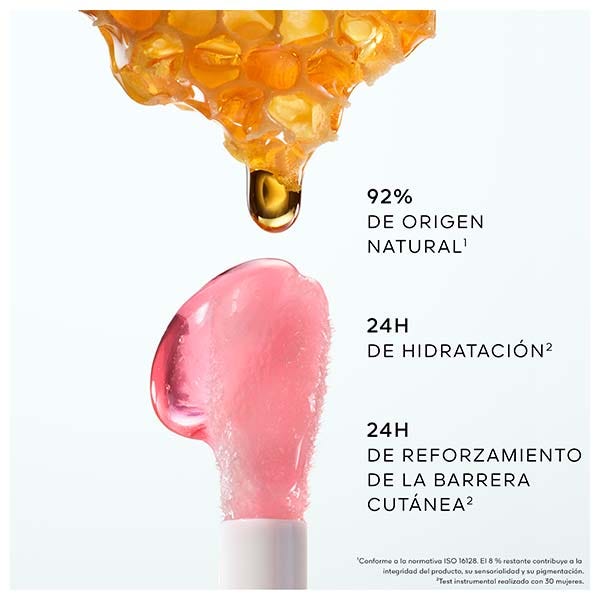Compuesta por un 92 % de ingredientes de origen natural¹, la textura de tratamiento KissKiss Bee Glow Oil, nutritiva y redensificante, proporciona a los labios 24 horas de cuidado² y un efecto volumen inmediato con un brillo adictivo, sin efecto pegajoso. Sublimados y nutridos, los labios lucen más bonitos día tras día.