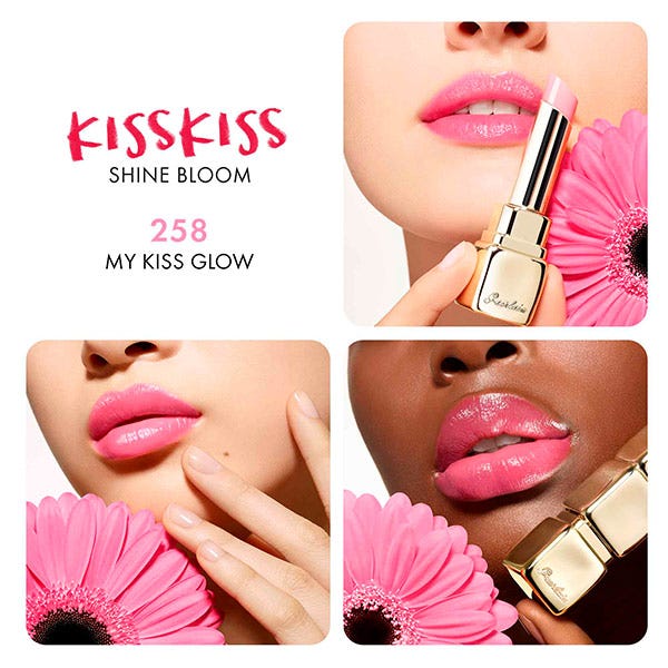 Consejo: Para lograr un color aún más vibrante, aplicar 258 My Kiss Glow debajo de Kisskiss Shine Bloom.