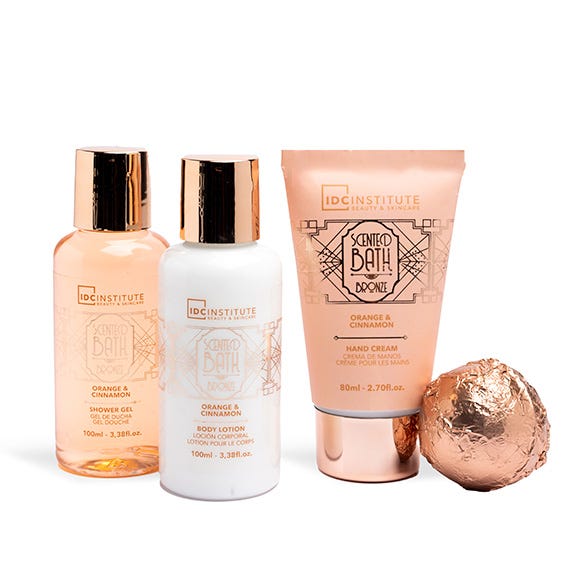 Descubre el lujo de esta encantadora bañera reutilizable que alberga un gel de baño, loción corporal, crema de manos y bomba de baño, todos sutilmente perfumados con una cautivadora mezcla de Naranja y Canela. Disfruta de una experiencia de baño exquisitamente fragante.