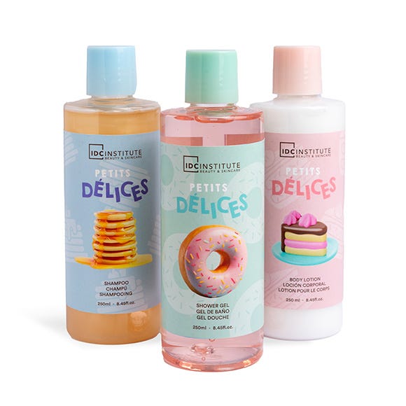 Sumérgete en el placer con el set de ducha de la colección Gourmands Favorites. Incluye un gel de ducha, loción corporal y shampoo, cada uno con deliciosos aromas que revitalizan tus sentidos. Este trío esencial limpia, hidrata y nutre tu piel y cabello, transformando tu rutina diaria en un momento de puro disfrute.
