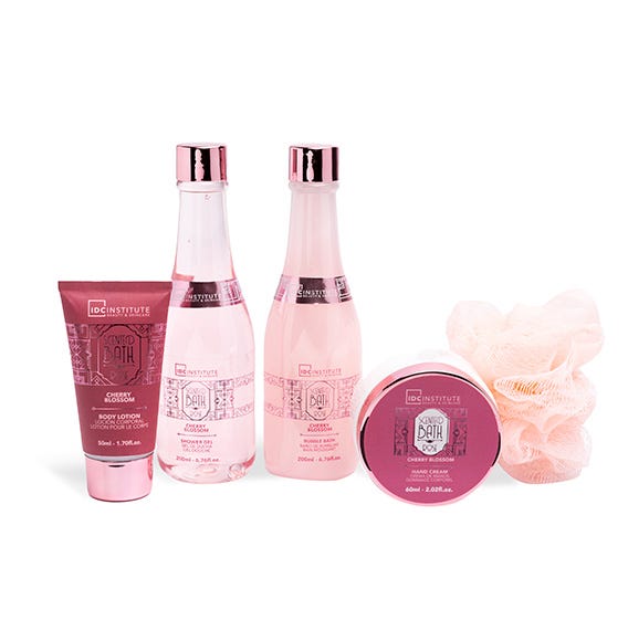 Este set imprescindible contiene un gel de ducha que revitaliza, una espuma de baño que transforma tu bañera en un oasis perfumado, una crema de manos que suaviza e hidrata profundamente, y una loción corporal que deja la piel radiante y delicadamente perfumada con el aroma embriagador de la flor de cerezo.