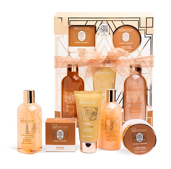 La caja de 5 piezas de Scented Bath Bronze contiene paso a paso cada uno de los productos esenciales que necesitas para darte un baño que relaje tu cuerpo y tu mente. Siéntete renovado usando el baño de burbujas, gel de ducha, sales de baño, exfoliante y crema corporal.