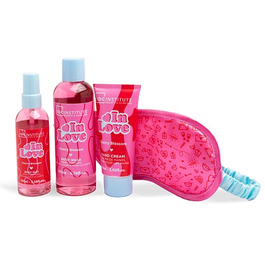 Descubre la colección ""In Love"". Nuestro set de baño incluye un gel de baño, una colonia refrescante, una crema de manos y un antifaz para un sueño reparador. Sumérgete en un mundo de indulgencia y romance, donde cuidar de ti mismo se convierte en un lujo esencial.