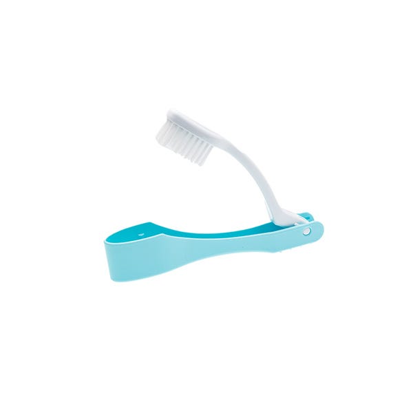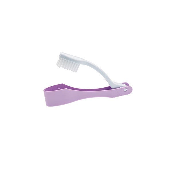 Cepillo Dental Plegable: El cepillo cerrado ocupa el mínimo espacio y protege las fibras de forma higiénica.