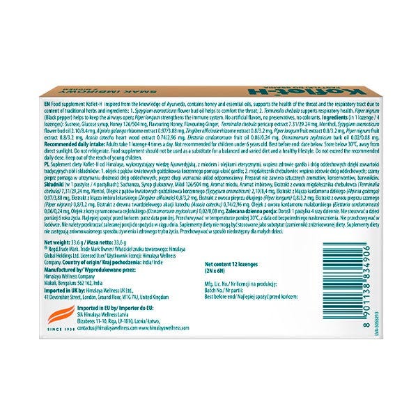 Koflet-H jengibre HIMALAYA es beneficioso para combatir la tos seca y productiva. Reduce la irritación de la mucosa bronquial. Las propiedades antiinflamatorias de Koflet-H reduce la inflamación del tracto respiratorio superior.