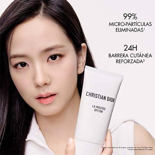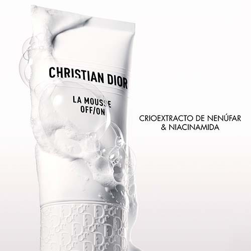 La espuma limpiadora facial La Mousse OFF/ON, enriquecida con crioextracto de nenúfar blanco y niacinamida refuerza la barrera cutánea y aporta hidratación y un acabado radiante a la tez. Su crema untuosa se transforma en una espuma aérea y perfumada al contacto con la piel.