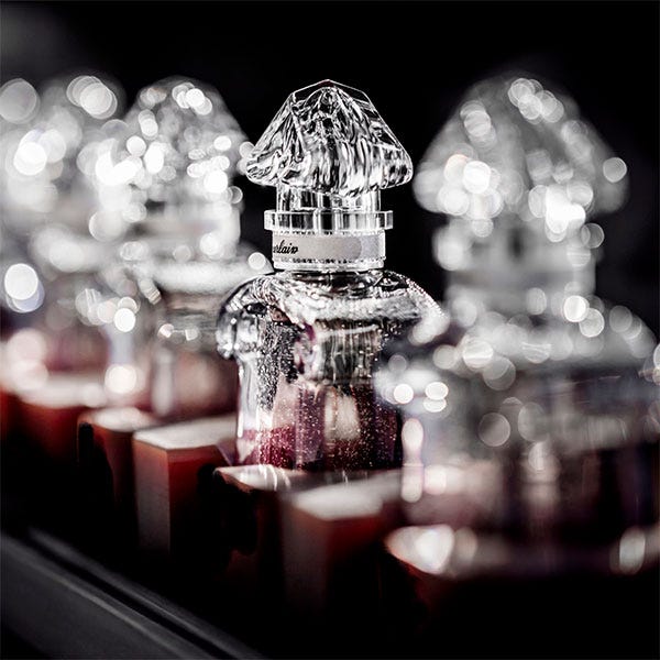 Un primer guiño de cereza negra expresado por una mezcla de almendra, bayas y bergamota. En el segundo paso la rosa entra en escena. Por último, hace acto de presencia el haba tonka que seduce con un aroma almendrado potenciado por el té negro en una mezcla ahumada.