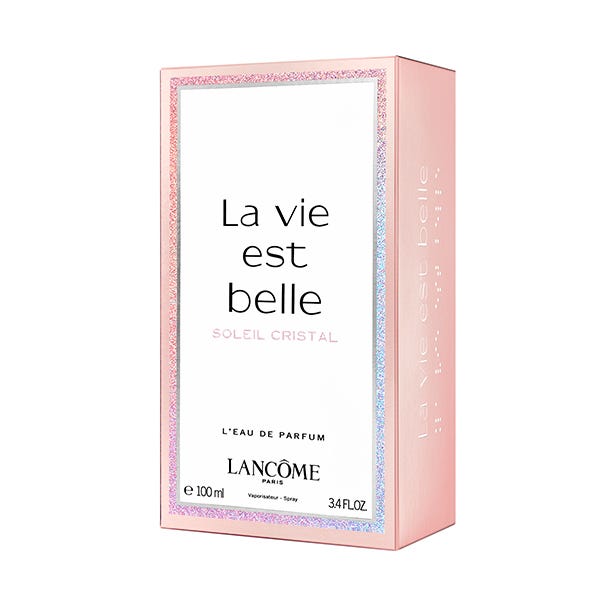 Presentando la faceta más luminosa de la felicidad en la línea de fragancias La vie est belle Soleil Cristal es la nueva adicción solar que brilla con un cálido corazón floral. El nuevo Eau de Parfum se compone de brillantes notas de salida de mandarina, un corazón de flores blancas y una estela de vainilla bronceada (Madagascar) combinada con pachulí (Bali).
