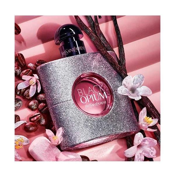 BLACK OPIUM GLITTER de Yves Saint Laurent es la nueva versión del icónico café floral con un toque más chispeante que despierta una sensualidad magnética. La nueva versión del icónico café floral con un toque más chispeante que despierta una sensualidad magnética.