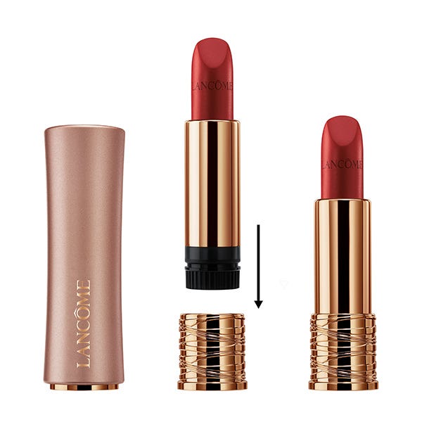 Lancôme L'Absolu Rouge Intimatte es una barra de labios mate sedosa con una fórmula modulable, ligera y cómoda que se desliza suavemente y sin esfuerzoz sobre los labios. Proporciona cuidado y comodidad, olvidando que lo llevas puesto. Magistralmente encapsulada en un nuevo lujoso packaging de oro rosa hecho en Francia, con una silueta única, elegante y femenina con un lujoso anillo engarzado.