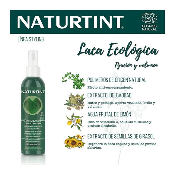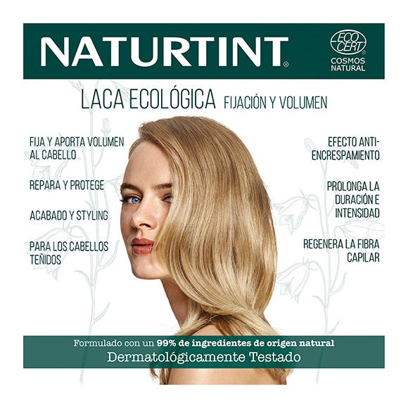 Laca con Certificación Ecocert formulada con un 99,6% de ingredientes de origen natural y orgánicos.