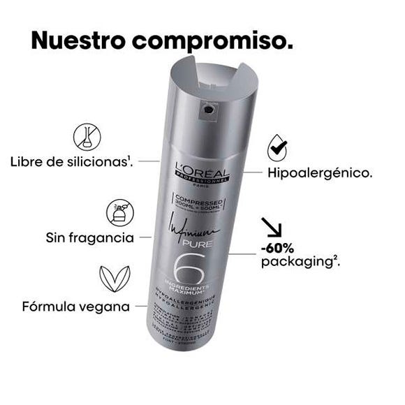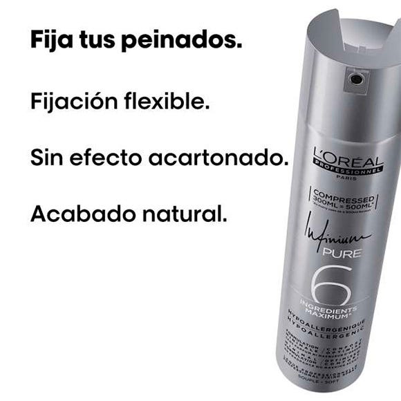 Infinium Pure Strong de L’Oréal Professionnel, una laca suave, hiopoalergénica y sin perfume.