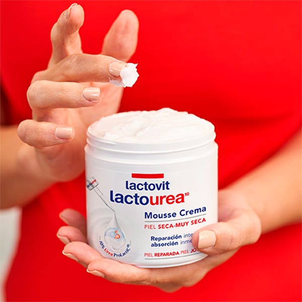 Su exclusiva fórmula repara y refuerza la piel intensamente. Su textura mousse, ligera como el aire, aporta una absorción inmediata y un tacto sedoso. Lactourea, con su doble acción, aporta una hidratación intensiva y repara la barrera cútanea. Aumenta un +60% la producción de ceramidas, ofreciendo asi una reparación superior a las lociones solo con urea.