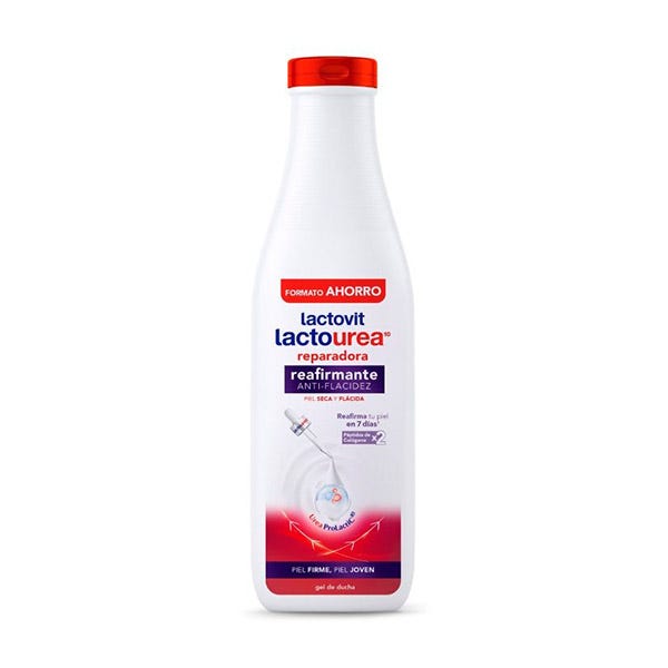 Los geles de baño Lactourea Reafirmante de Lactovit reparan y reafirman la piel seca y flácida. Su fórmula combina Urea ProLactic10, un complejo exclusivo que repara la piel seca e impulsa la síntesis de colágeno y elastina, y Péptidos de Colágeno, para una piel más